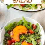 This Arugula Peach Salad, made with the best of summer produce, chewy grains, and nuts for some crunch, is hearty and delicious. It’s all topped with a tangy citrus dressing. Perfect for summer entertaining or a fresh weeknight dinner.