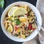 Taste and adjust seasoning as necessary. Add another pinch of salt, squeeze of lemon, and/or the vegan parmesan, if desired. Add additional pasta cooking water if you like it looser.